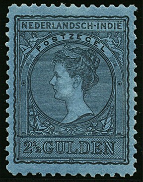60B en 61B, 1 Gulden doflila op blauw en 2½ Gulden zwartblauw op blauw, Lt. 11 x 11½, postfrisse prachtex. met cert. Muis (2001) € 700