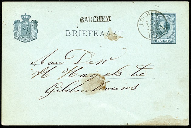 Het zeldzame naamstempel BARCHEM (bestelhuis) op bk. G25 uit 1882