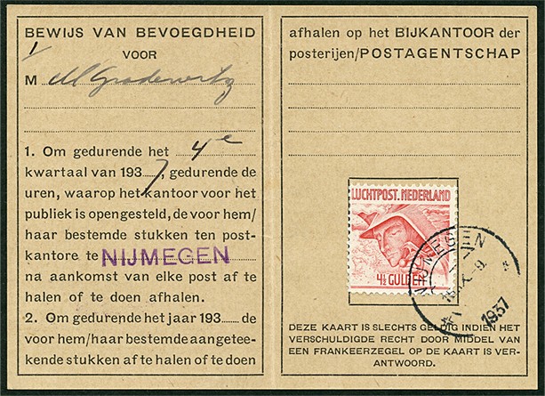 Drie verschillende postbuskaartjes waarop luchtpostzegels, 75c LP5 in paar (Venlo 1943), 1½ gld LP6 (Venlo 1942), 4½ gld LP7 (Nijmegen 1937)