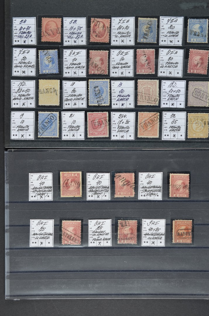 POSTHISTORIE. 22 Zegels tussen nrs. 5-32 afgest. met Aangeteekend cursief of in kader, en Franco met of zonder kader