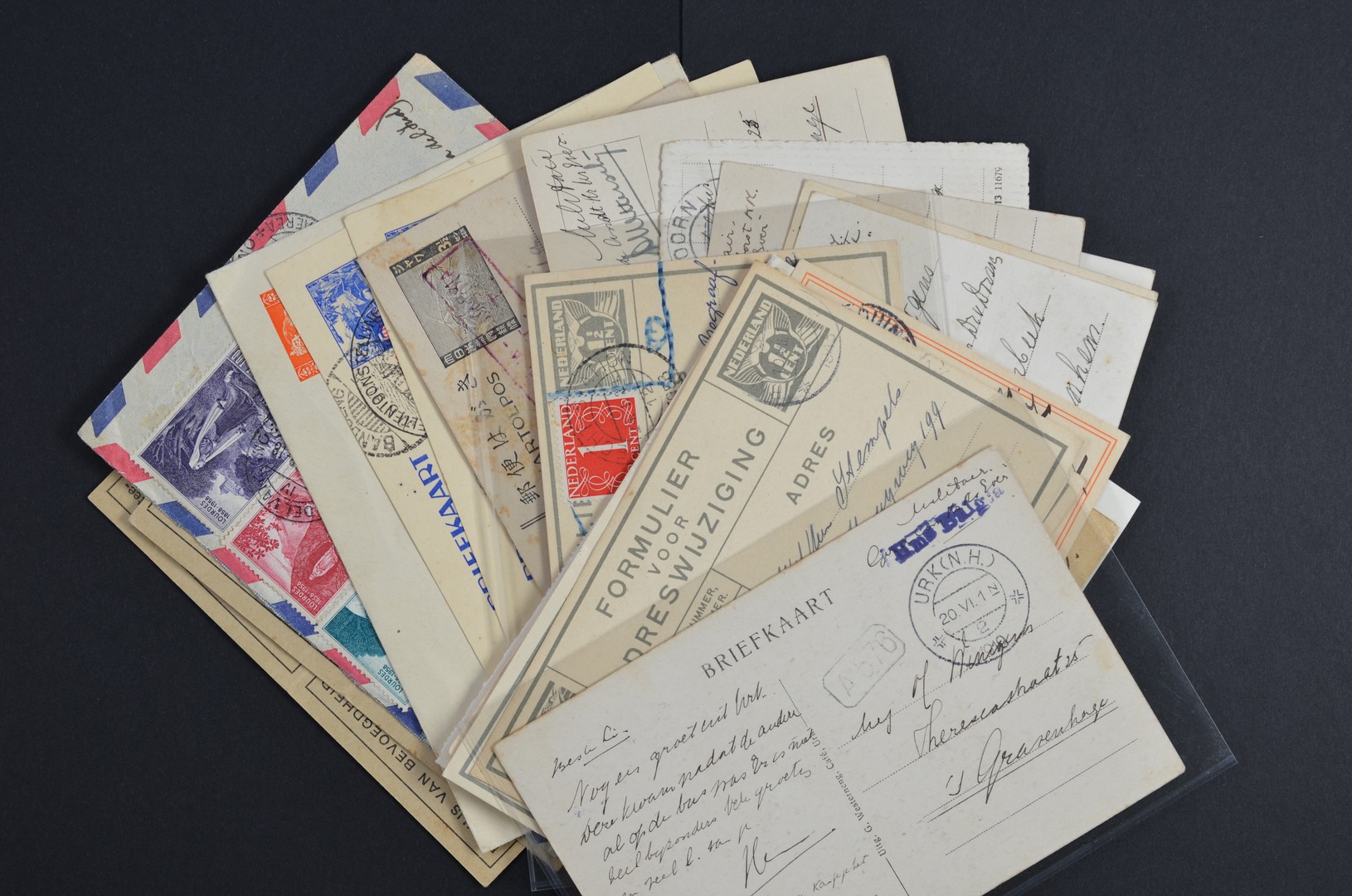 NEDERLAND EN NED.- INDIË POSTHISTORIE. 26 Betere poststukken vnl. jaren '10-'40 w.o. verhuiskaarten, postbuskaartjes, militair, diversen Indië