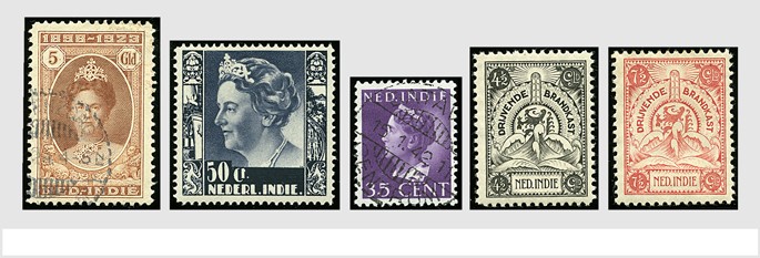 NEDERLANDS-INDIË 1864-1949, o/* op albumbladen met o.a. 1/2, 149/59, 166, 260, 280, 287, 289, Port 1, Brandkast 1/7