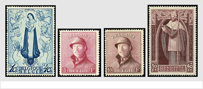 BELGIË, partijtje ongebruikte series tussen 1919 en 1934 op insteekkaart waarbij Helm, Mercier en Orval. Hoge cat.wrd.