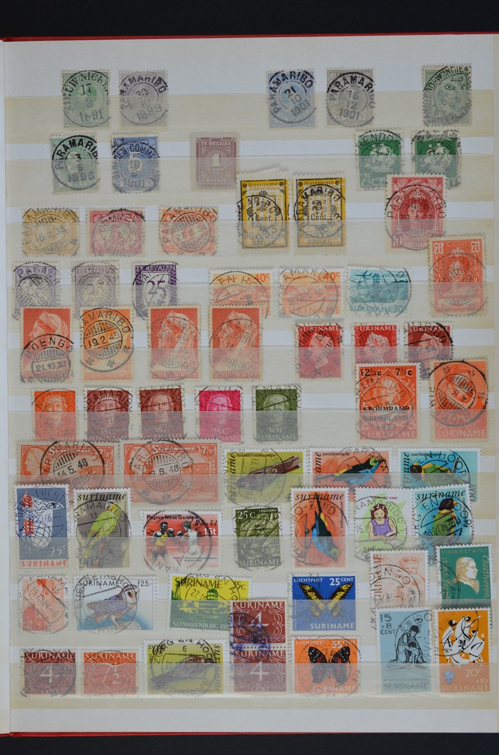 O.G.D. POSTHISTORIE, engros en diverse stempels op losse zegels, w.o. mooie afdrukken type kleinrond, kortebalk en langebalk, van Curaçao, Ned. Antillen, Suriname en iets NNG, in insteekboek