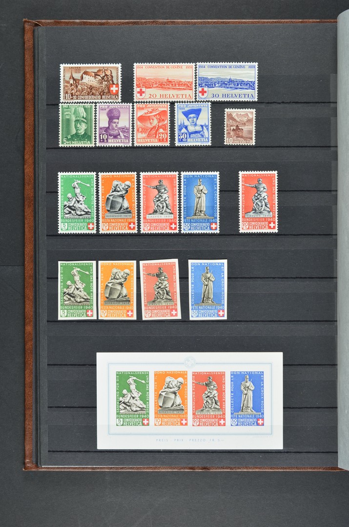 ZWITSERLAND 1908-1980, */** verzameling in insteekboek waarbij alle blokken, Pax-serie, Luchtpost, etc., zhcw.