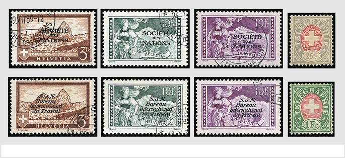 ZWITSERLAND, o/*/** verzameling Port, Dienst, Telegraaf en Int. Org., 2 albums met diverse goede nrs. en series o.a. Dienst 1/8 waarbij op brief, goed gedeelte Int. Org., Port en leuk Telegraaf w.o. nr.11 met cert. 'ABT'