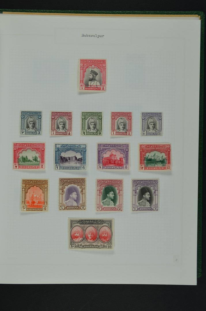 INDIA 1860-1946, o/*, Convention States wb. aardig Chamba, Gwalior en Jind, goed Bahawalpur en Burma, alsmede Feudatory States Alwar t/m Travancore. Mooie koop in blanco album