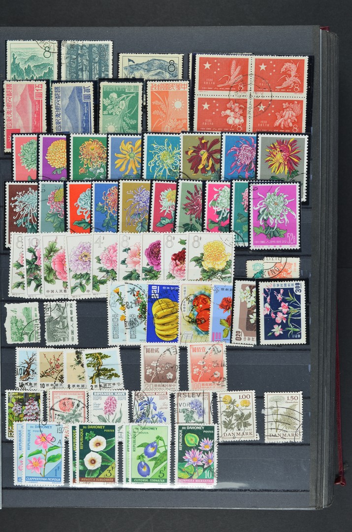 MOTIEF: Bloemen landen A t/m Z, **/o verzameling in 2 dikke insteekboeken, wb. betere series, alsmede China. Leuke koop !