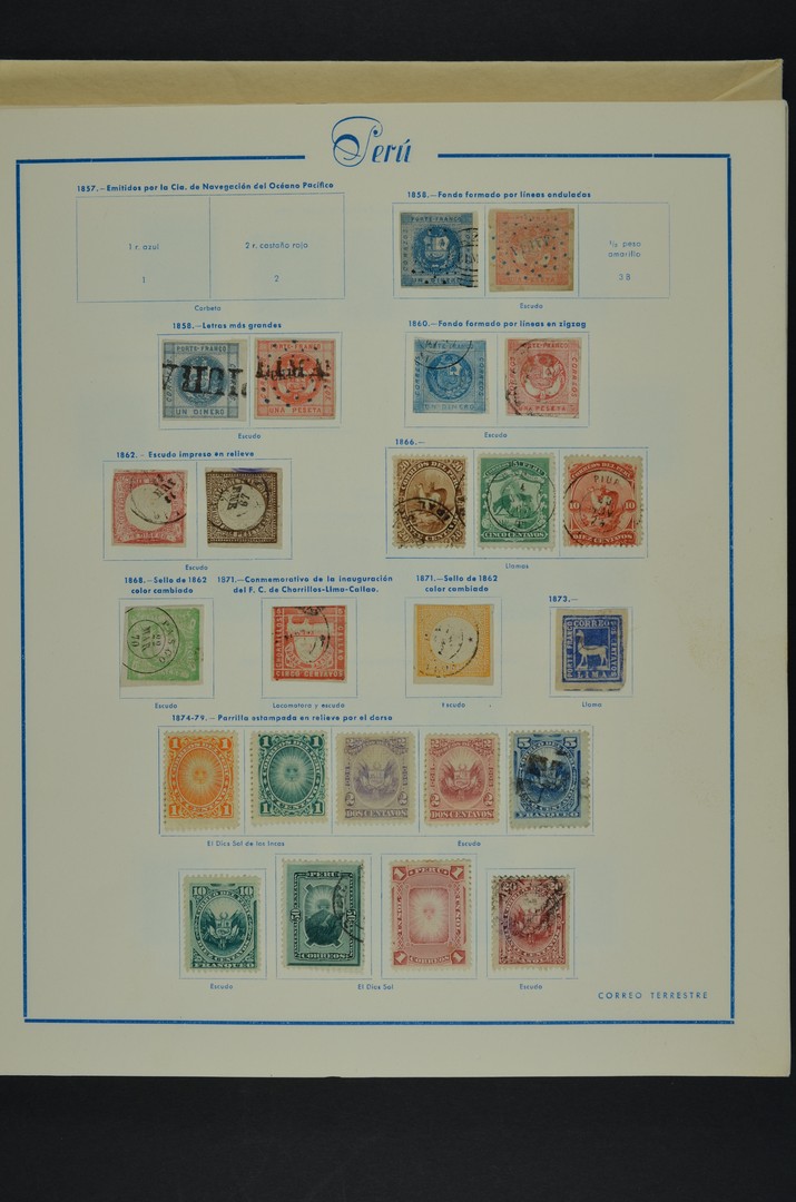PERU 1858-ca.1975, verz. o/*/** in speciaal album en insteekmap waarbij zeer aardig klassiek, deels gespecialiseerd, div. betere nrs. en series en hoge cat.wrd. Tevens "Peru Postgeschichte und erste Briefmarken" door Herbert H. Moll