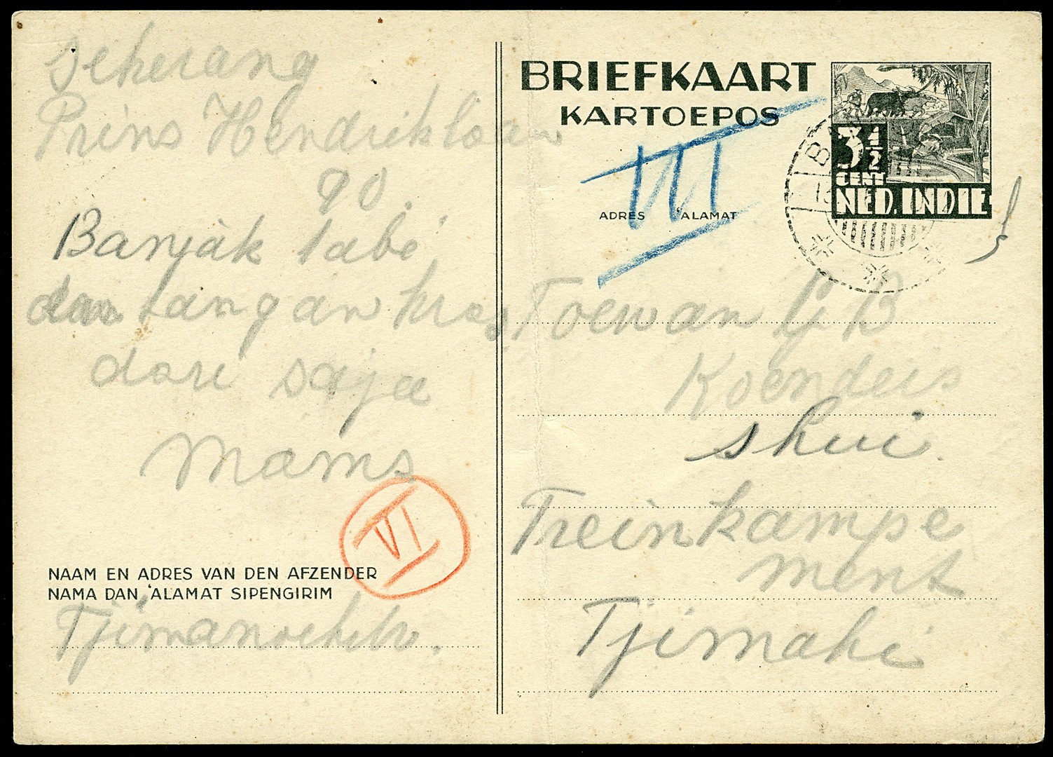JAVA. 3½ Cent postcard Bu.3a from a wife in Bandoeng 13.6.02 to her husband, interned in the 'Treinkampement' in Tjimahi. Very few correspondence to this temporary internment camp has survived