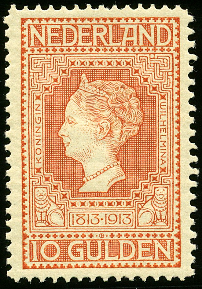 101, 10 Gulden roodoranje, ongebruikt prachtstuk €.950