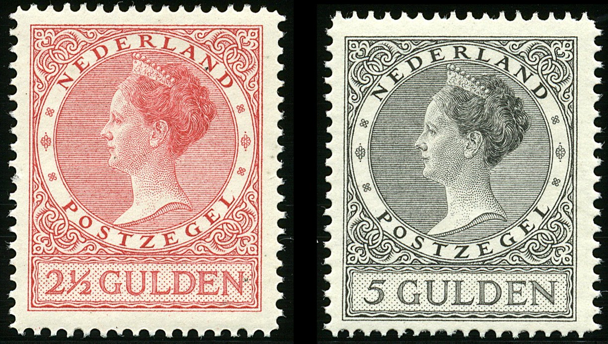 163B/165B, 1, 2½ en 5 Gulden Koningin Wilhelmina, Lt.12½, postfrisse prachtex. €.650