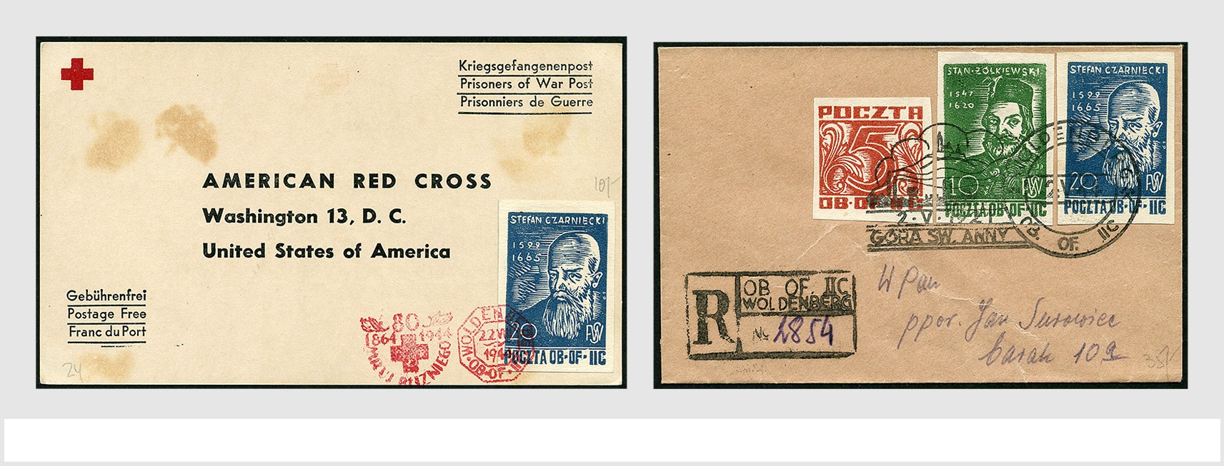 POOLSE KAMPPOST 1942-1945, mooie collectie van de kampen Murnau, Grossborn en Woldenberg wb. mooie Houtsnedes, enkele blokken en 19 poststukken. Zeldzaam materiaal met hoge waarde!