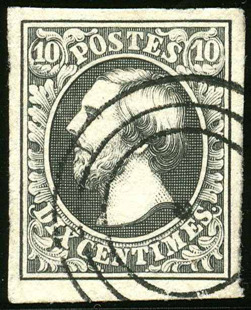 TIRAGES ET NUANCES DES 10 CENTIMES 1a, 10 cts 'noir', 1er tirage, impression fine obl. 3 cercles, bas de feuille et trés belles marges. TB 1a, 10 cts 'schwarz', 1e Ausgabe, feiner Drück mit Bogenunterrand, entwertet durch 3-Kr., gut gerandetes Prachtstück. Cert. Goebel (2008)