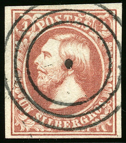 2c, 1 sg 'brun-rouge', oblitération 3 cercles en vert, TB. 2c, 1sg 'rotbraun', mit grünem Dreikreisstempel, Pracht. Cert. Goebel (2008), Demuth (1982)