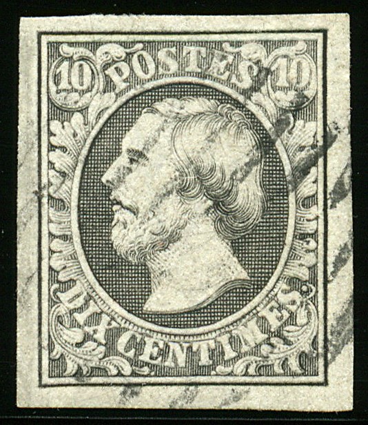 1j, 10 centimes gris noir', oblitération centrale 9 barres de Luxembourg. TB 1j, 10 cts 'schwarzgrau', entwertet mit 9-Balkenstempel van Luxemburg, breitrandiges Prachtstück. Sign. Demuth BPP