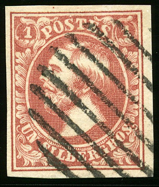 2a, 1 sg 'sanguine', oblitération 9 barres, TB 2a, 1 sg 'blutrot', entwertet mit 9-Balkenstempel, Pracht. Cert. Demuth (1994)