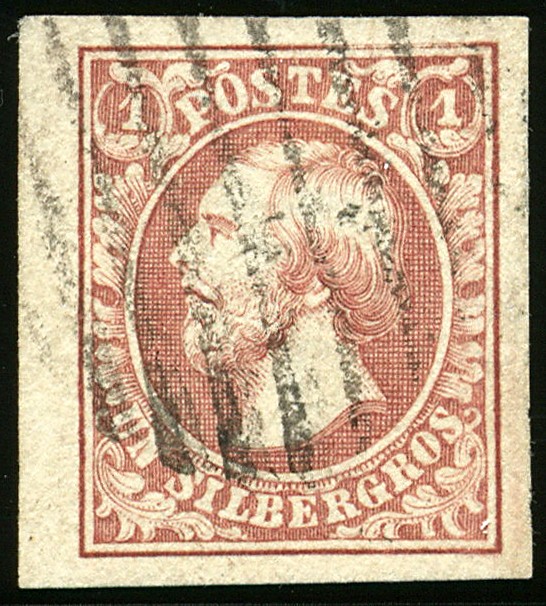 2h, 1 sg 'rose carminé', bord de feuille gauche, oblitération 9 barres, TB 2h, 1 sg 'karminrosa', linker Bogenrand, entwertet mit 9-Balkenstempel, Prachtstück. Sign. Demuth, Cert. Goebel (2013)