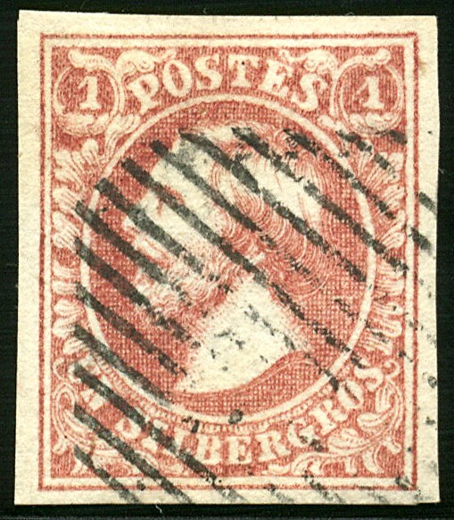 2c, 1 sg 'brun rouge foncé', oblitération Colosse à 26 barres. (ex. collection Seligson) TB 2c, 1 sg 'dunkelbraunrot', entwertet mit Riesenstempel 26 Balken. (ex. Kollektion Seligson), Pracht. Cert. Demuth (1982)