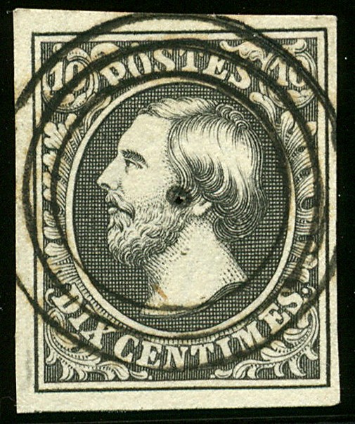 BUREAU DE REDANGE-SUR-ATTERT 1a, 10 centimes 'noir', 1er tirage, oblitération centrale 3 cercles à pointe perforante, Superbe. 1a, 10 cts 'schwarz', erste Auflage, entwertet mit Dreikreisstempel mit Stempelspitze, Luxusstück.