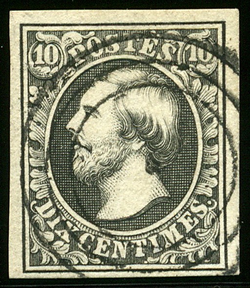BUREAU DE WEISWAMPACH 1b, 10 centimes 'noir léger verdâtre', oblitération 3 cercles de Weiswampach, TB 1b, 10 cts 'leicht grünlichschwarz', entwertet mit Dreikreisstempel von Weiswampach, Pracht. Sign. Goebel