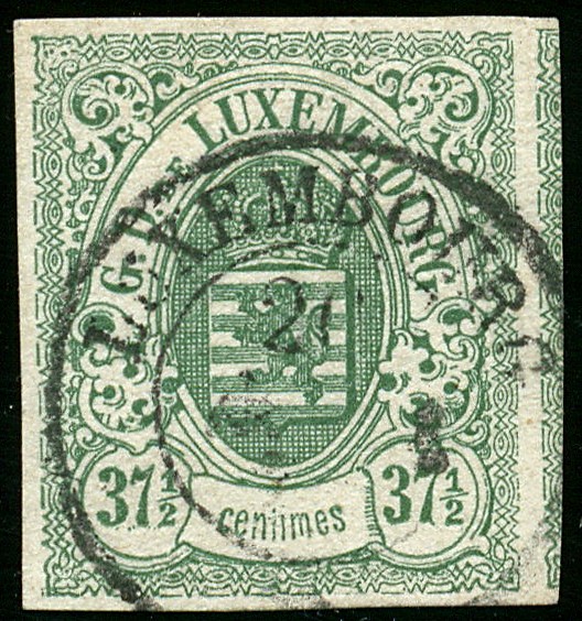 BUREAU DE LUXEMBOURG-VILLE Mi.10, 37½ centimes 'vert', voisin, avec oblitération Luxembourg, Superbe Mi.10, 37½ cts 'grün', mit Teil der Nebenmarke, entwertet mit DKr. von Luxemburg, sign. Goebel