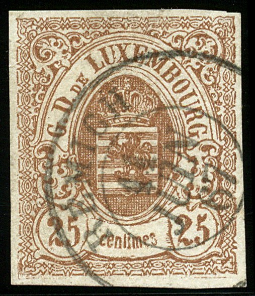 BUREAU DE REMICH, Mi.8, 25 centimes 'brun', oblitération c.à.d. REMICH 11/JUIN/67. TB Mi.8, 25 cts 'brun', Prachtstück, entwertet mit DKr. REMICH 11/JUIN/67. Sign. Goebel