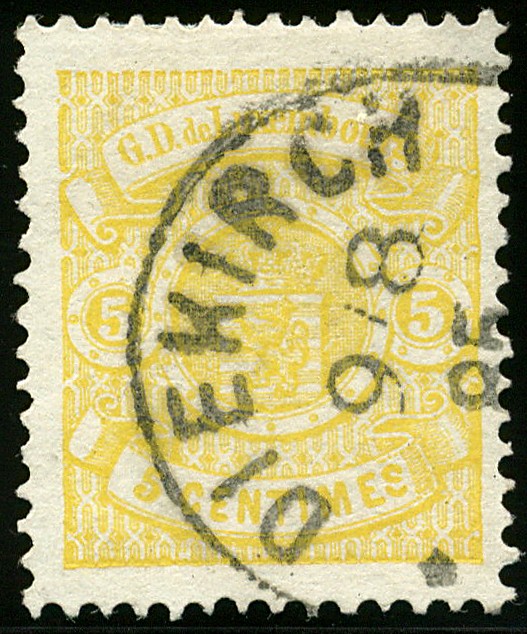1880 - EMISSION AUX ARMOIRIES DENTELEES (Impression de Haarlem), Mi.39A, 5 centimes 'citron', oblitération de Diekirch Mi.39A, 5 cts 'zitronengelb', entwertet mit Kreisstempel von Diekirch. Tadellose Erhaltung. Sign. FSPL