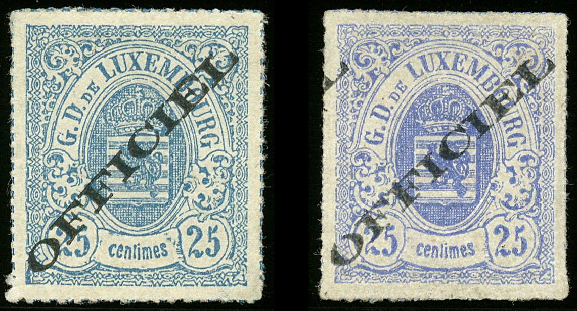 Mi.6Ia, 25 centimes 'bleu', et Mi.6Ib, 25 centimes 'outremer', neuf sans gomme. (le 25 centimes outremer est une des grandes raretés des timbres de service). TB Mi.6Ia, 25 centimes 'blau' (sign. FSPL) und Mi.6Ib, 25 centimes 'ultramarin', ungebraucht ohne Gummi. (Die 25 centimes ultramarin ist einer der grössten Seltenheiten der Dienstmarken). Cert. Goebel (2009)