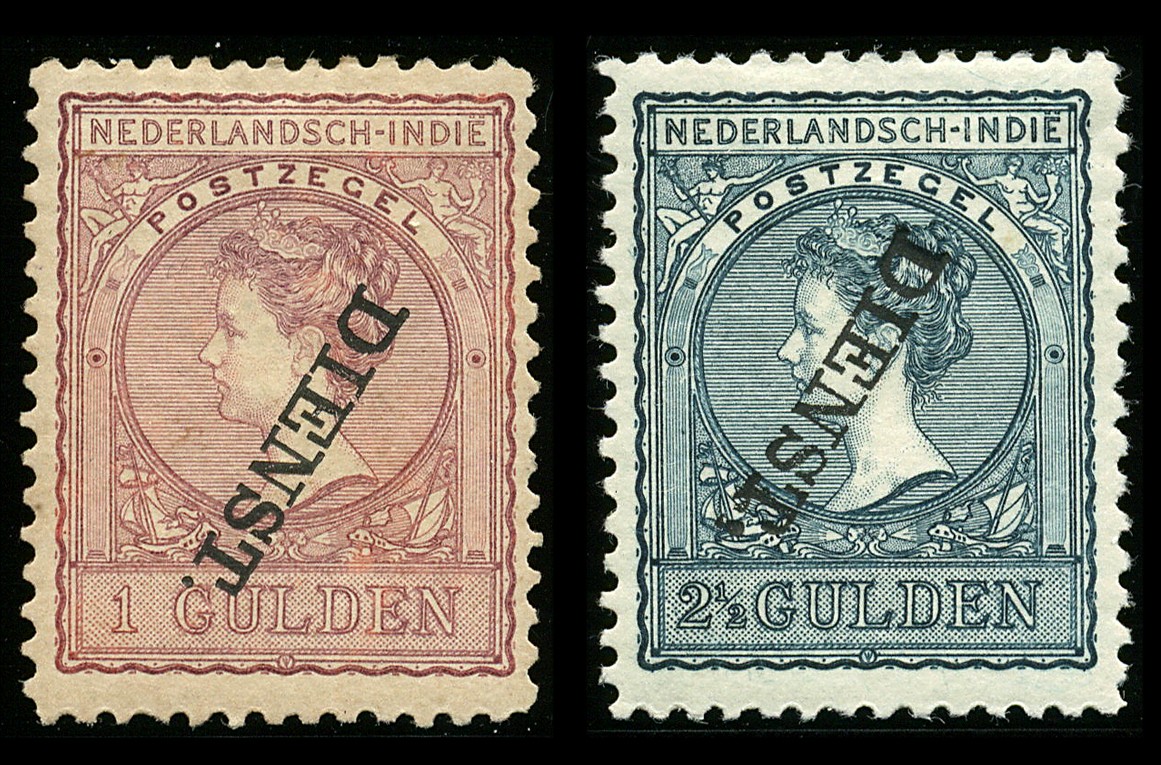 Dienst 9f-27f (ex.23f), ½ cent t/m 2½ gulden (ex. 25 cent), ongebruikte, meest prachtex. met kopstaande opdrukken, div. met keur Ned.Bond, Keiser en D26f met cert. Ned.Bond. € 1920