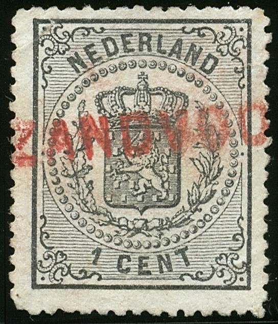 Naamstempel ZANDVOORT met schreefloze letters in rood op 1c nr. 14. Prachtex. met mooie afst.