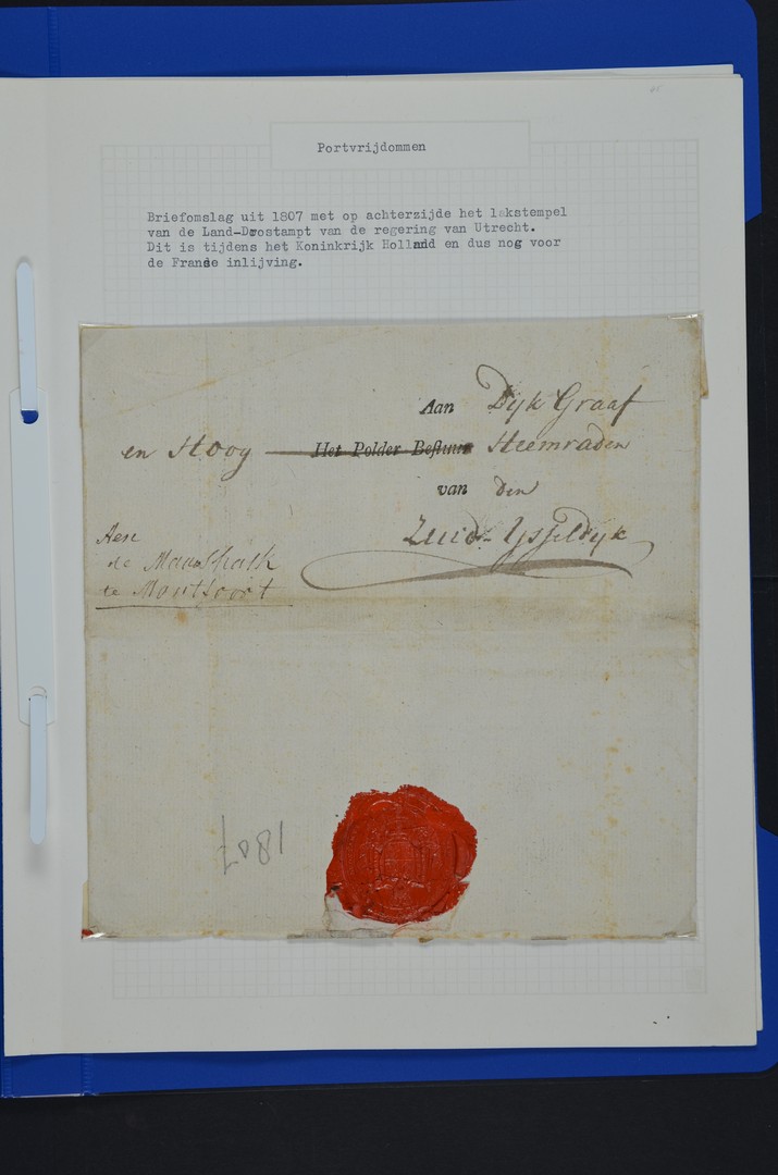 3 Voorfilatelistische poststukken, waaronder brief 1807 aan de Dijkgraaf en HoogHeemraad Zuid IJsseldijk