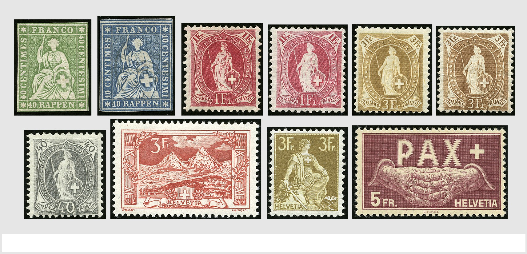 ZWITSERLAND ca. 1860-1977 verz. */** met goed materiaal, o.a. vrijwel alle blokken (geen blok 5), Pax-serie postfris, tevens vele doubletten. Het geheel in 2 insteekboeken.