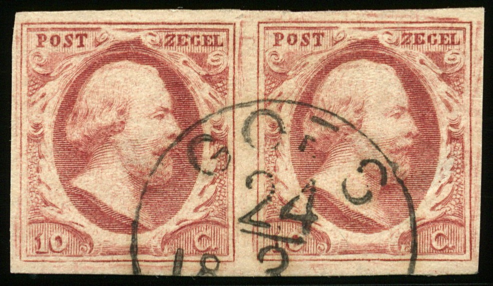 10 Cent rood nr. 2l, plaat VI pos. 52/53. Prachtpaar keurig afgest. Goes C