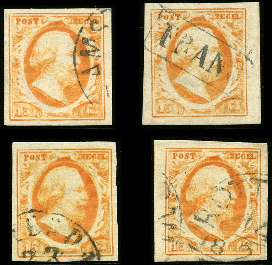 15 Cent oranje nr. 3. Acht redelijk tot mooi gerande prachtex. waaronder enkele gepositioneerd
