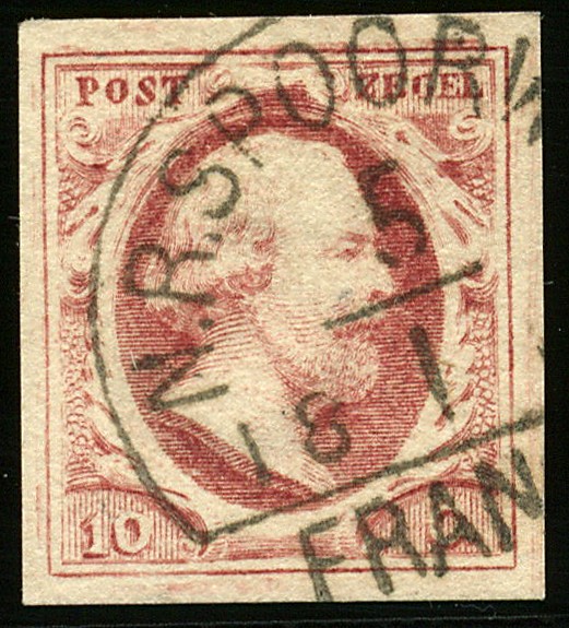 N.R.SPOORWEG (EY.125) op 10 cent rood. Breed gerand prachtex. met mooie afst.