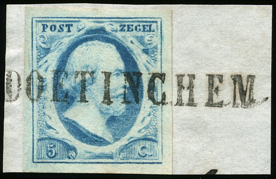 DOETINCHEM (EY.250) op 5 cent blauw. Breed gerande prachtzegel op briefstukje waarop bijzonder mooie, volledige afst.