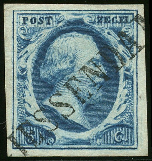 GIESSENDAM (EY.500) op 5 cent donkerblauw nr. 1b, plaat I. Superbe! Ex Klink en Van Kimmenade