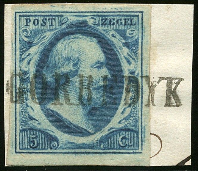GORREDYK (EY.100) op 5 cent donkerblauw nr. 1i, plaat III. Prachtex. op briefstukje met volledige afst. Ex van Dieten