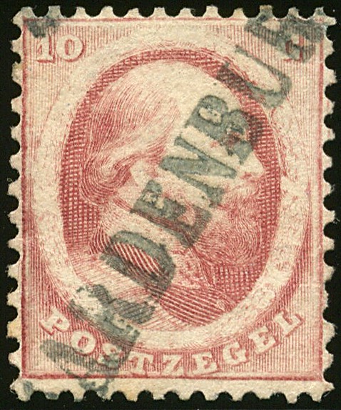 AARDENBURG in blauw op 10 cent. Prachtex. met zo ideaal mogelijke afst.