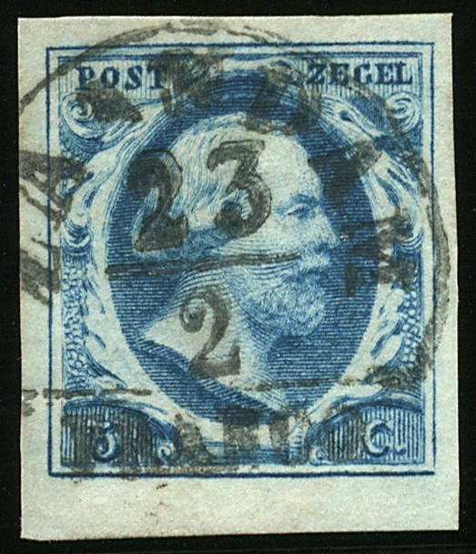 1a-Pl.I-49. Breed gerand pracht randstuk in diepdonkerblauw met volledig Zaandam A