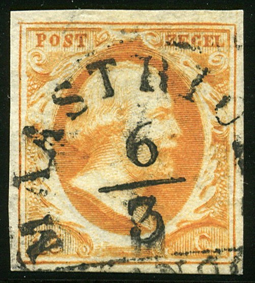 MAASTRICHT A (EY.700) op 15 cent donkergeeloranje nr. 3a, pos. 48. Prachtex. met nagenoeg ideale afst.