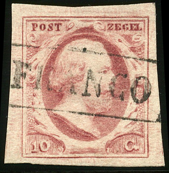 Franco in kader op 10 cent nr. 2g-Pl.IV-69. Breed gerand laat gebruikt prachtex. Zeldzaam