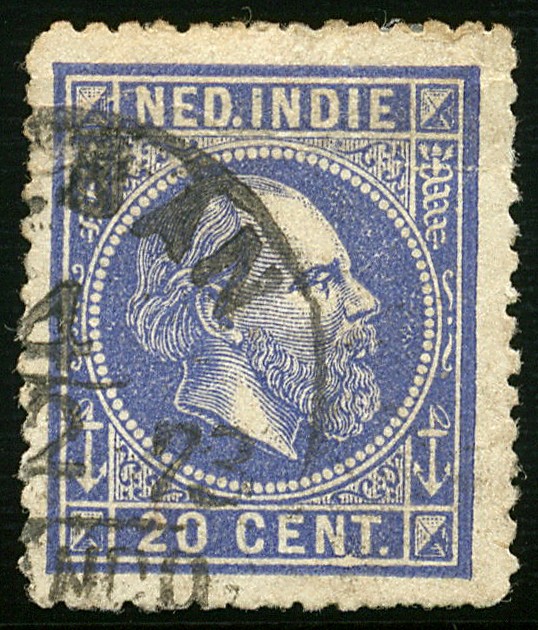 Halfrond-franco TOEBAN op 20c nr. 12. Zeer fraai ex. met halve, doch onmiskenbare afdruk. Zeldzaam op deze emissie en zeker op de 20 cent!