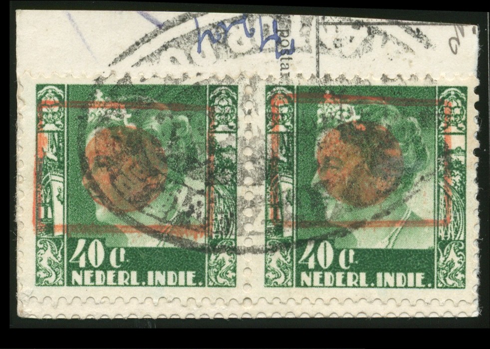40 Cent Kreisler with orange Hinomaru no. 211o-32b on M.O. fragment tied by oval negative pmk GOENOENGTOEWA type 091 (vNV. RR)