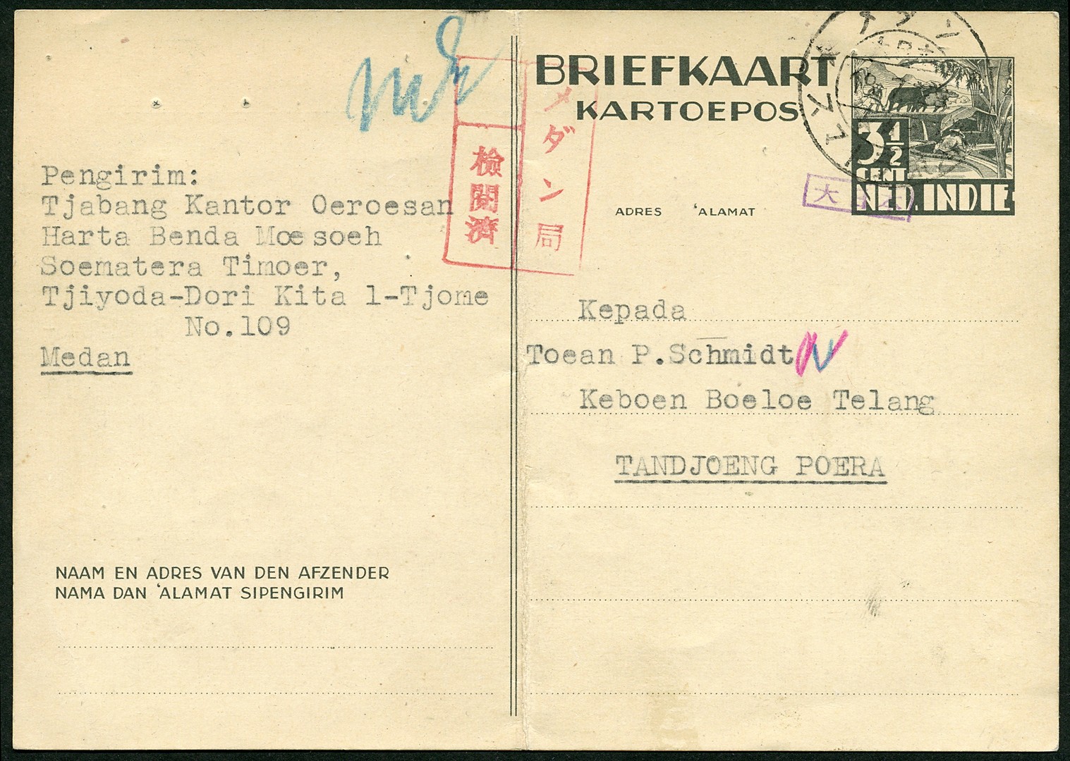 3½ Cent postcards (3x) and covers (8x) all from Sumatra (mainly Medan and some from the West Coast) and showing several types of overprints, frankings, postmarks and censors