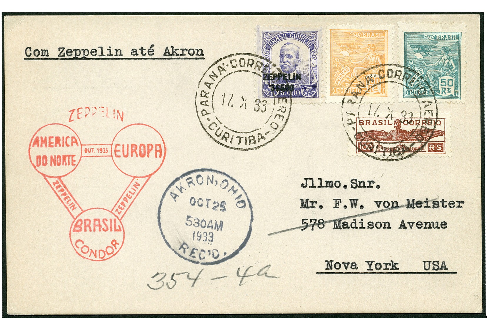 Zeppelinpost. Brazilië. Retourvlucht Curitiba 17-10-1933 naar Akron 25-10. S.239A