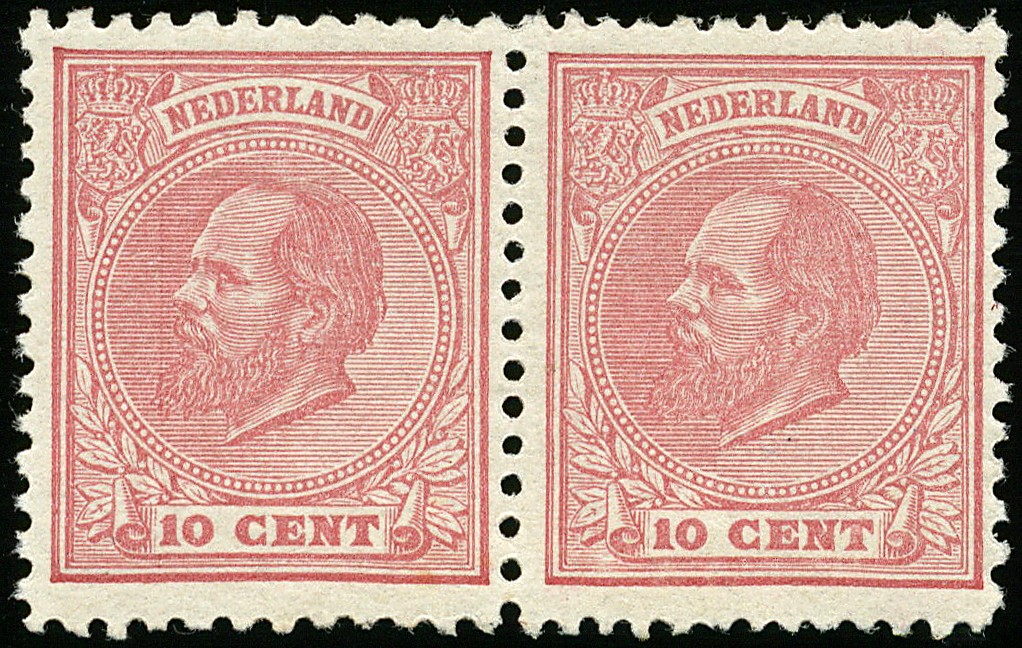 21E + 21D, 10 cent rood in paar met gecombineerde tanding, ongebr. prachtex. € 700