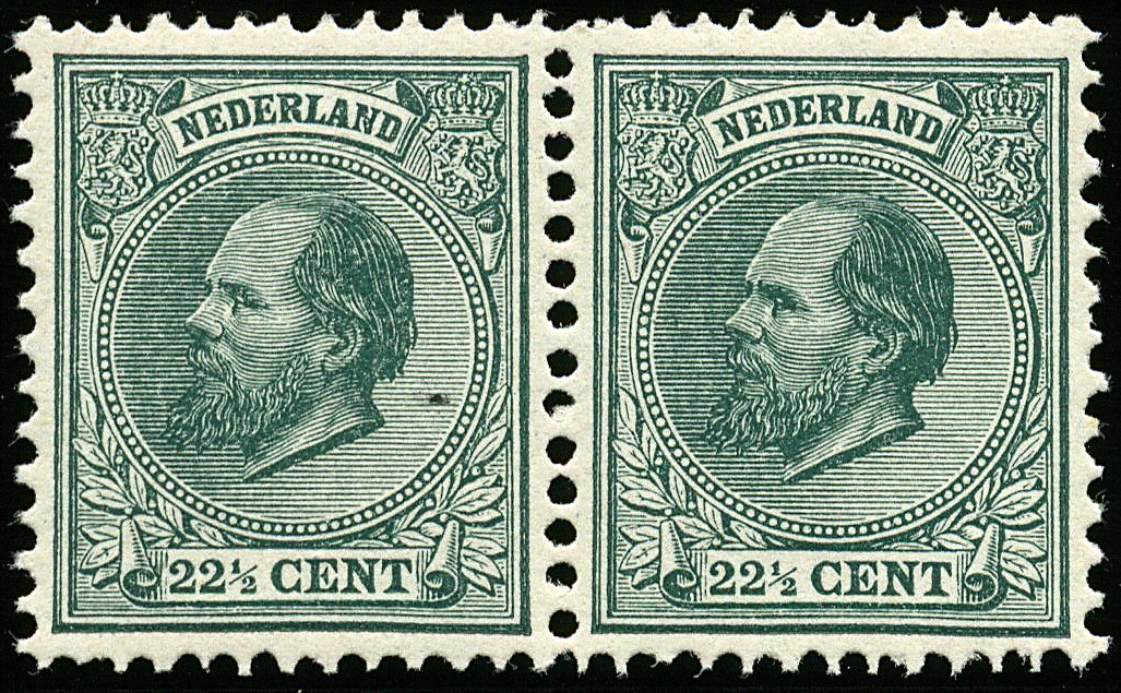 25, 22½ cent blauwgroen in postfris paar, het linkerex. heeft een origineel zwart puntje, ov. prachtex. € 2900