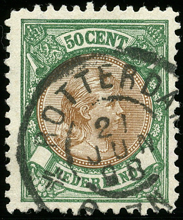 45C, 50 cent donkergroen en donkerbruin, Lt.11, gebruikt prachtex. met Befund Dr. Louis (2000) € 275
